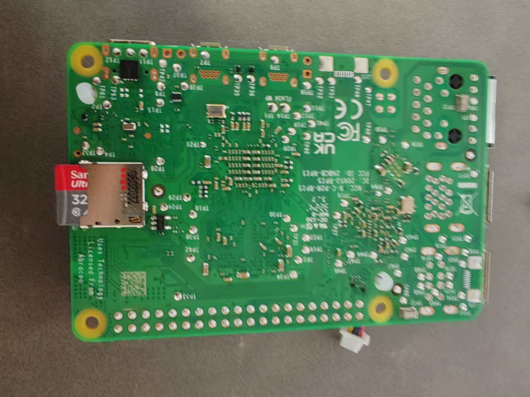 接着我们把装好系统的SD卡插到派派的“硬盘槽”,在板子背面