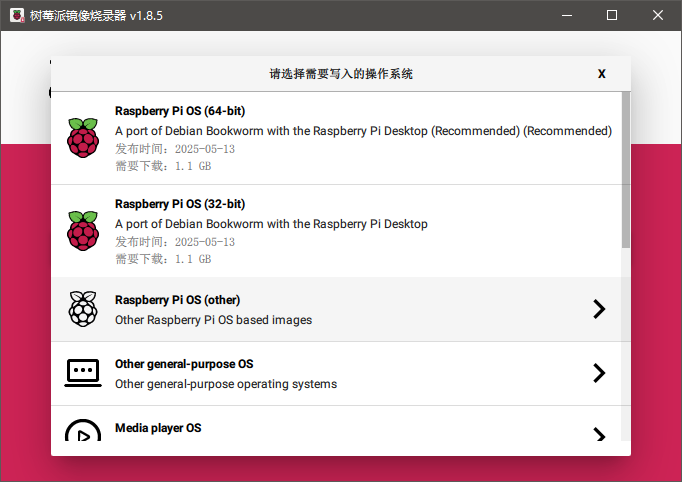 树莓派OS除了分为32bit和64bit版本以外,还额外分为lite、default和full三个版本,lite和full版本需要在Other入口进入后选择