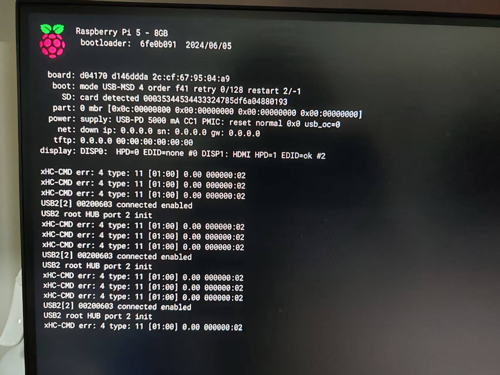 接下来我们按照上面发的接口图示,把电源和显示屏插上,发现指示灯绿灯闪烁并且风扇正常旋转,看显示屏也没有什么报错信息,就说明板子没有大碍,就可以准备装系统了